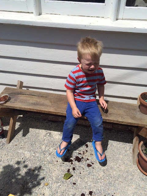 Eat on a stoop in the sun with a cold cup of Milo. Don't drop the cake on the ground like Alfie did. The way he behaved you would have thought he had spilt his milk!